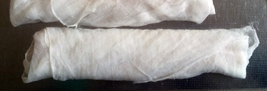 冷蔵庫保存は乾きが速いので、サラシが乾いたらそのつど、水分を補給する。