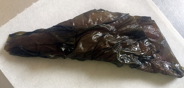 長時間昆布に包むと昆布の味が強くなりすぎるので、2日たった魚は、昆布から出しサラシ、ラップに包み直す。