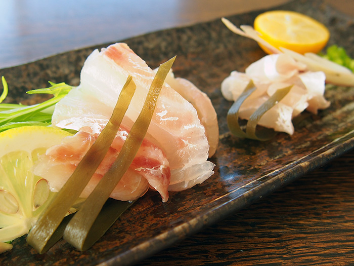 皮と身の間の脂を逃さない湯引き造り。