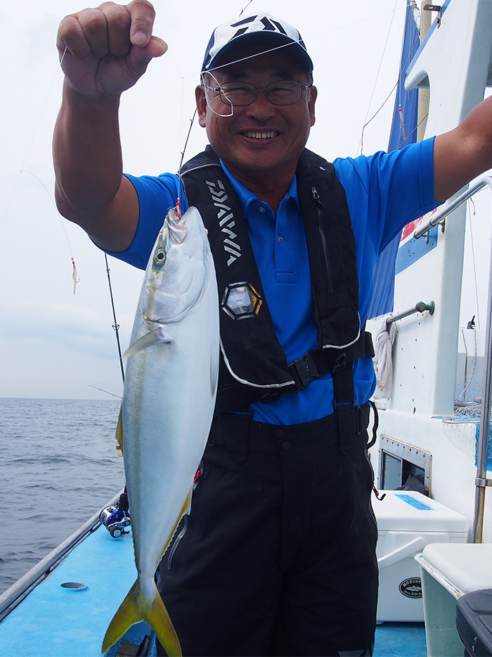 時に下からイナダがウルメを突き上げ、タナが海面から10〜15メートルと上がることも、こんな時はウルメが掛かったと思った途端にイナダがハリ掛かりしていました。