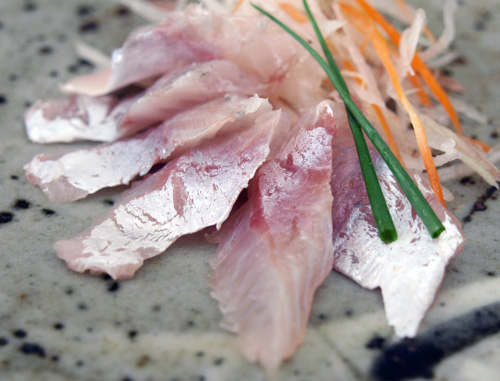 削ぎ切りにして、お造りに盛る。