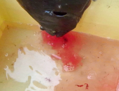 これは撮影のために素手で行っていますが、普段はタオルなどで、鋭いヒレから手を守りながら、行って下さい。