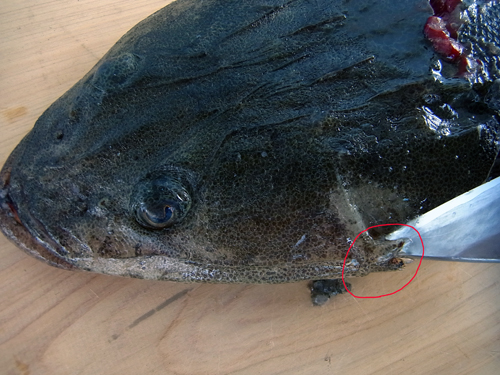 トゲ(赤丸の中)は危ないので、さばく前にハサミなどで処理しても◎。