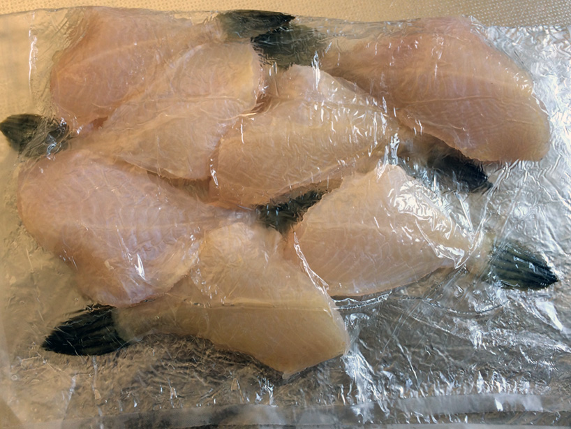 ジップロックに10%の塩水を作り、カワハギを1時間浸ける。