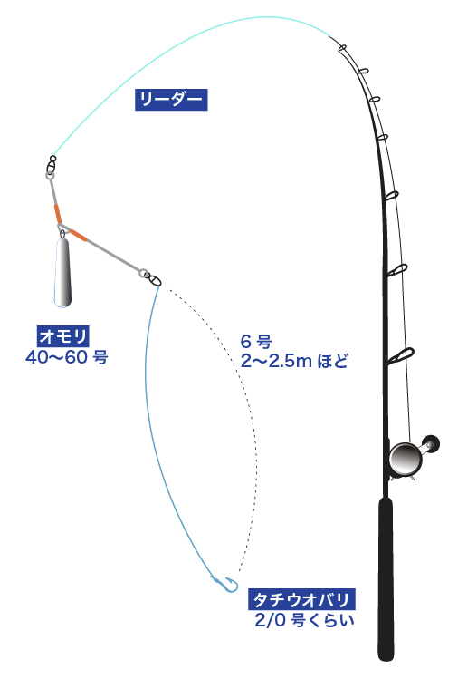 | オモリ | PE04〜2号で40〜60号ほど |