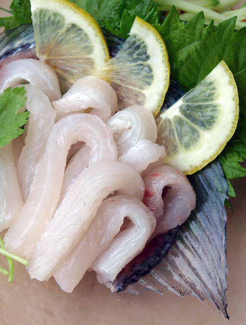 タチウオのお刺身は、脂がのってとてもおいしいのですが、一般には出回っていません。