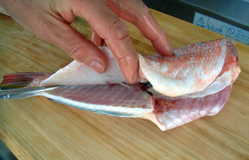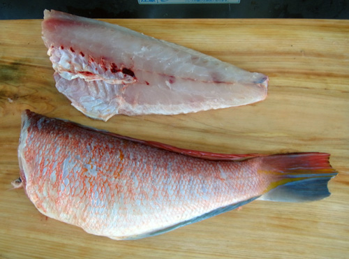 アマダイの切り身、2枚おろし