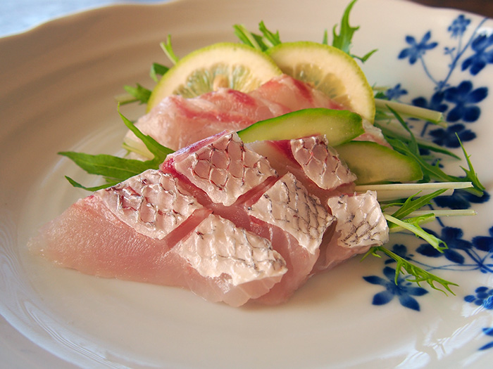 火を通しふわふわになったアマダイの身を出汁に付けて楽しむ、上品な料理方法です。 … 続きを読む 煮崩れさせずにきれいな仕上がり、アマダイの焼き浸し