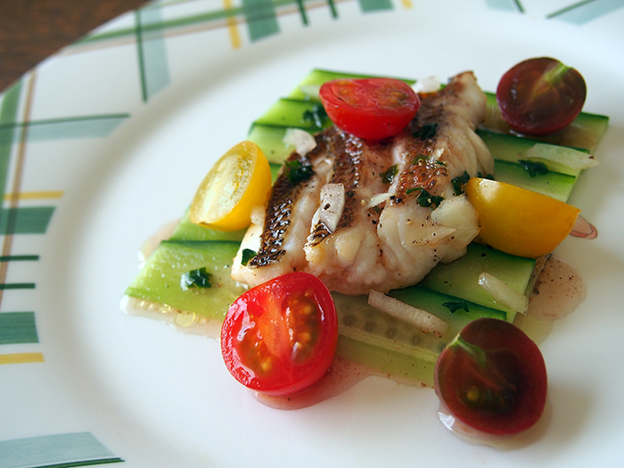 ■ 食材 マダイなど白身魚 塩、こしょう 【ドレッシング】 ワインビネガー、オリ … 続きを読む 皮目をカリッと焼いたマダイのサラダ