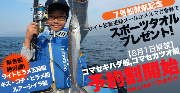 7号船出航記念で、今シーズンは『オンライン予約で500円割引』いたします。