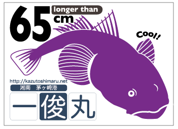 マゴチの撃墜ステッカーは60、65センチ。ヒラメは3キロ〜、1キロ単位です。