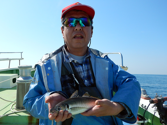お客様は初の深場釣りでアタリが分からず、高速で巻いてきてしまいましたが、魚は無事に上がってきました。