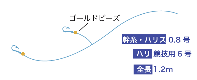 ちなみに受付で販売している仕掛けは、針:競技用8号、ハリス:1号、全長:90センチです。