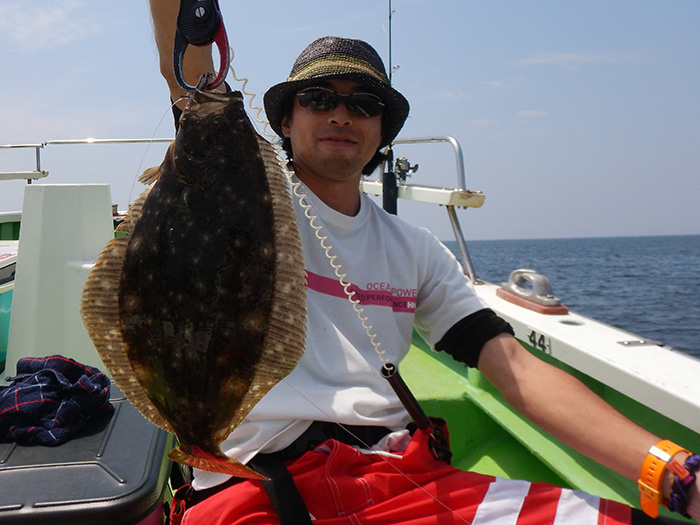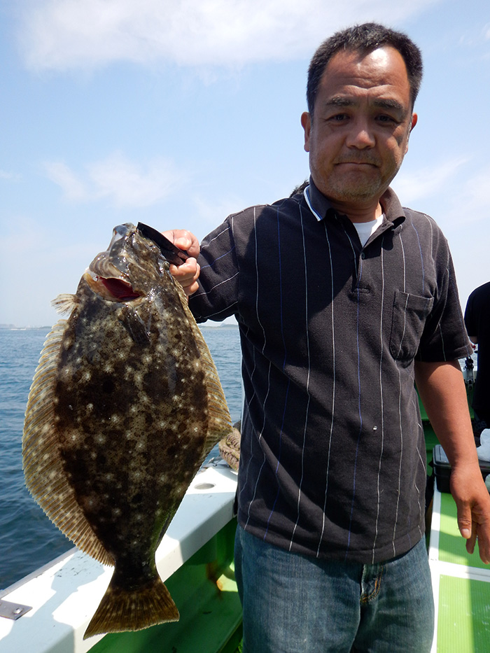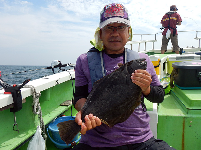 オモテ1番の堤さんは、昼過ぎにヒラメ1.8キロをゲットです。