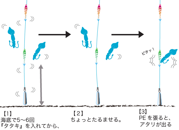 オモリを海底で5〜6回叩いた後、ピタっと止めてアタリを出す。