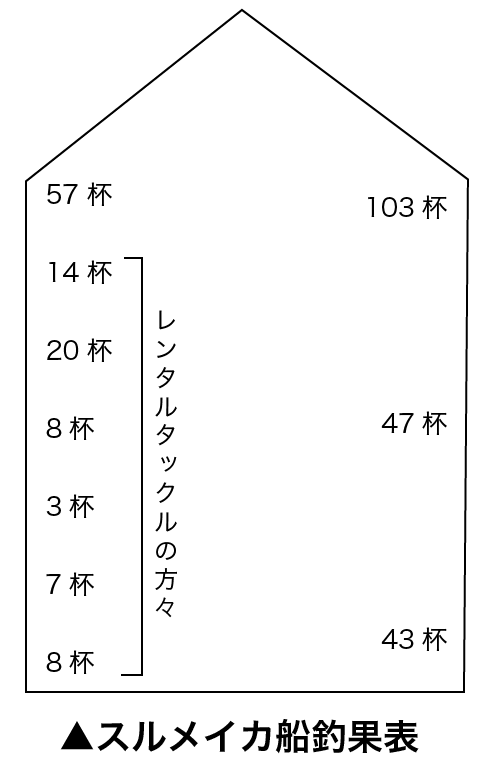 2日の結果は、25〜35センチが、3〜103杯(2番手以降、57、47、43……杯。3杯はレンタルの方。
