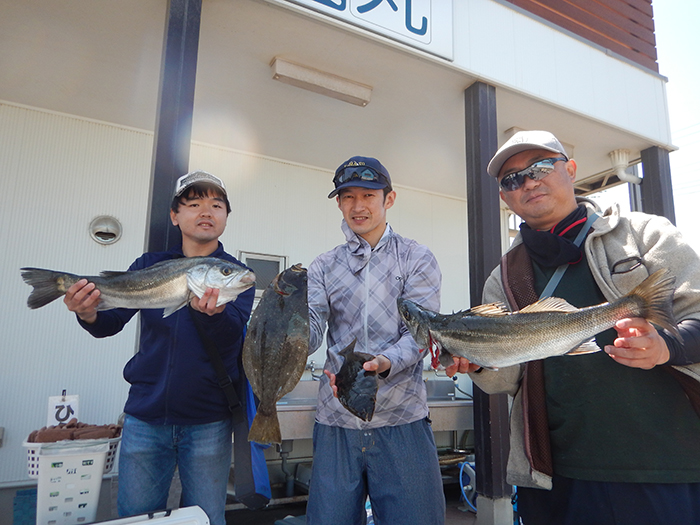 ラストは再度河口沖に戻り、ヒラメ2枚とスズキ1本追加して終了です。