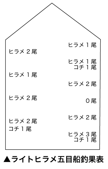 5日の結果はヒラメ 0.7〜1.2キロが、0〜3尾(10人で16尾。2尾は5人。0尾は1人)