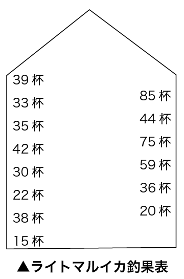 船中1033杯で、15人の平均釣果68.8杯という爆弾のような数が出たライトマルイカ船。
