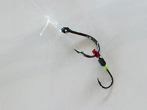 下の小バリにエサを刺し、弱らないように泳がせます。