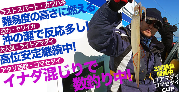 | 乗船代 | 男性9,500円。女性、小・中学生7,500円 (一日分・オキアミLL〜3Lの1パック付き) |
