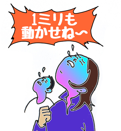 位置が微妙なので、脇に寄せようと、ブロックを手にしようとしたら……、