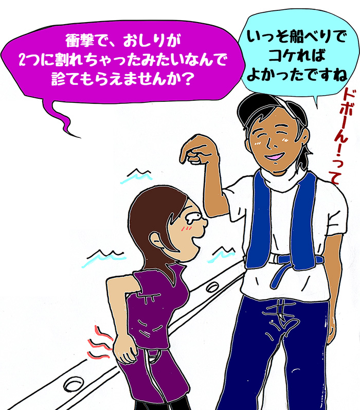 しかしH口君をめぐる緊張はいつも持続しているせいか、あろうことか、この間は、H口君が乗船している船で、私は大コケしてしまった。