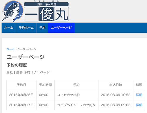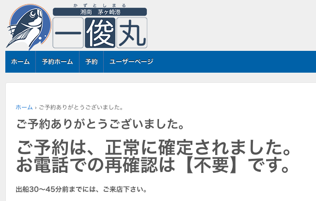 釣行予定日の1日前までは、オンラインで予約取消ができます。