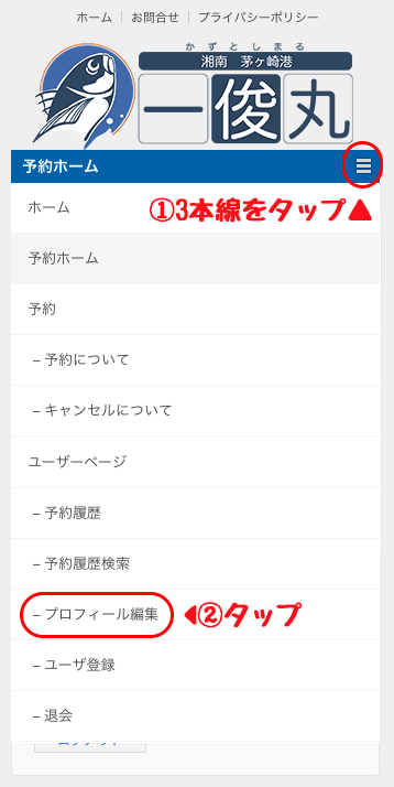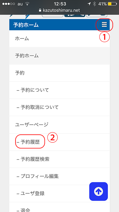 【スマホの見え方】スマホをご使用の場合は、横3本のメニューをクリックして、『予約履歴』を出してください。