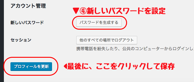 最後に下の『プロフィールを更新』を忘れずに、クリックして設定を保存!