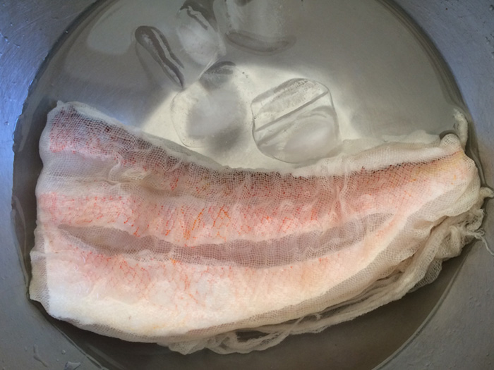 冷蔵庫保存は乾きが速いので、サラシが乾いたらそのつど、水分を補給する。