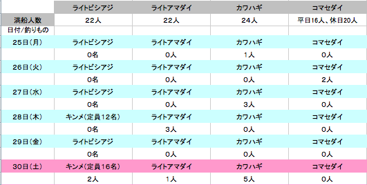■ 明日以降の出船状況(24日17時更新) 28日(木)、30日( … 続きを読む 【11月24日】ライトビシアジ爆釣、トップ62尾! キンメの出船日も増えました